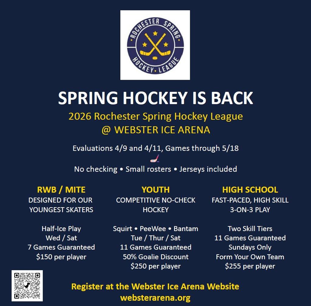 Webster Ice Arena is booking ice times for the coming season 2025/26